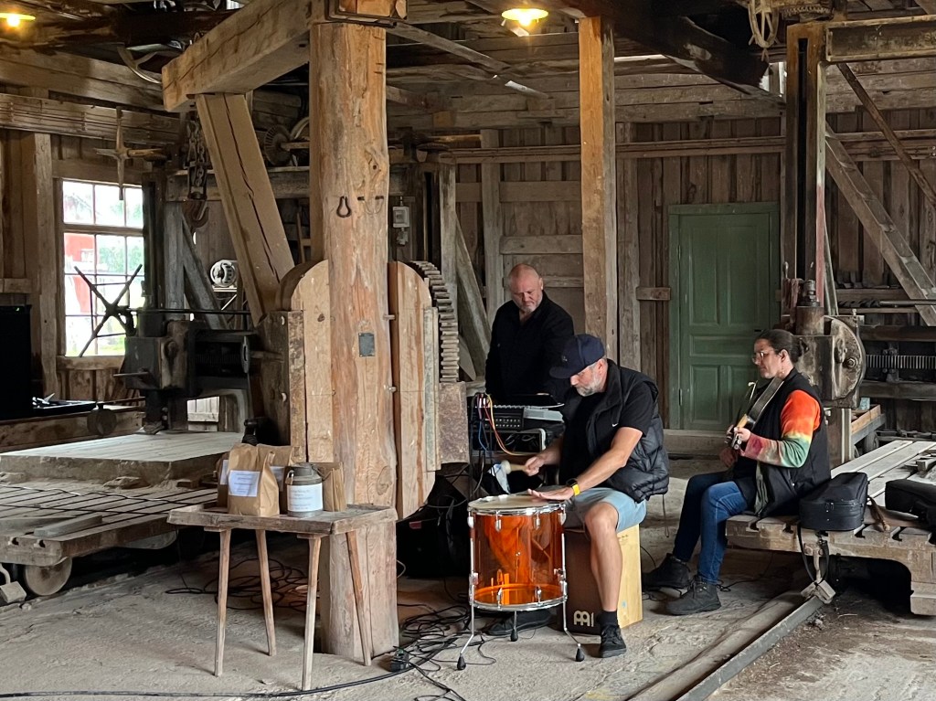 Nere i Råbäcks hamn fick vi tillfälle att samtala med bebyggelseantikvarie Anna Lokrantz, som slog ett slag för Byggnadsvårdsföreningen och dess utmärkta tidskrift. Anna och hennes man har en intressant podd om Kinnekulle. Avsnitten går att hitta om man söker på Lokrantz Kulturmiljö. Inne i Stenhuggeriet fick vi ta del av något som benämns Bryta Ljud 2025 – Kultur i Platåbergslandskapet. På hamnplanen var en svart husvagn uppställd. Där inne kunde man samtala med en gestaltpraktiker om vår plats i världen. Där tordes vi inte gå in😊