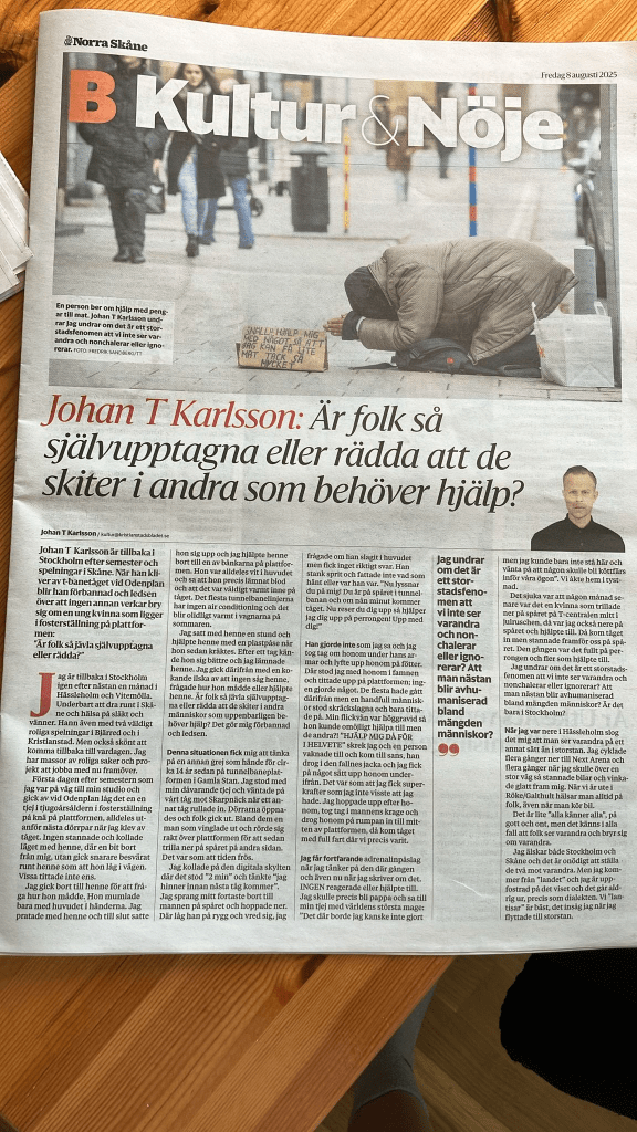 Idag har jag fått mig tillsänd en artikel i Norra Skåne. Den tyder på att omtanken om och vänligheten mot medmänniskorna är skruttig i landets storstäder, men att den är på topp i mindre städer som Hässleholm: