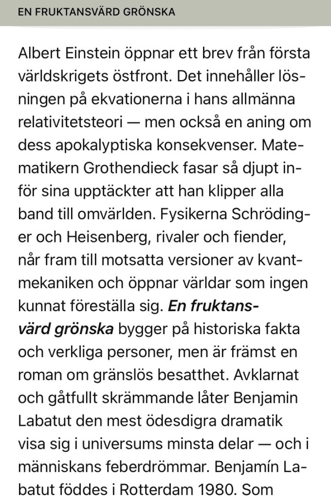 En sådan grönska (som bokens titel anspelar på) kan vara den bländande , smaragdgröna och förtrollande färg som arsenik uppvisar.