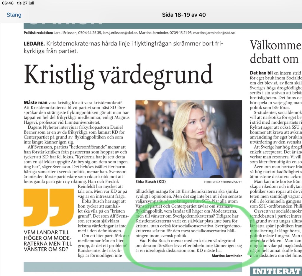 Ebba Busch saknar inte värdegrund. Problemet är bara att den är en blåkopia av Jimmie Åkessons. Den som liknar en avgrund.