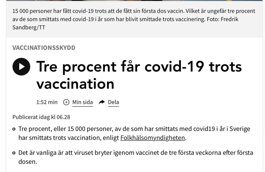 De siffror som Vetenskapsradion presenterade i morse var betydligt högre och i inslaget sägs det att det är många kvinnor mellan 40 och 49 år som insjuknar, trots att de är vaccinerade. Det sägs bl.a. bero på att i den befolkningsgruppen jobbar många i vården och riskerar att utsättas av höga doser av smitta.