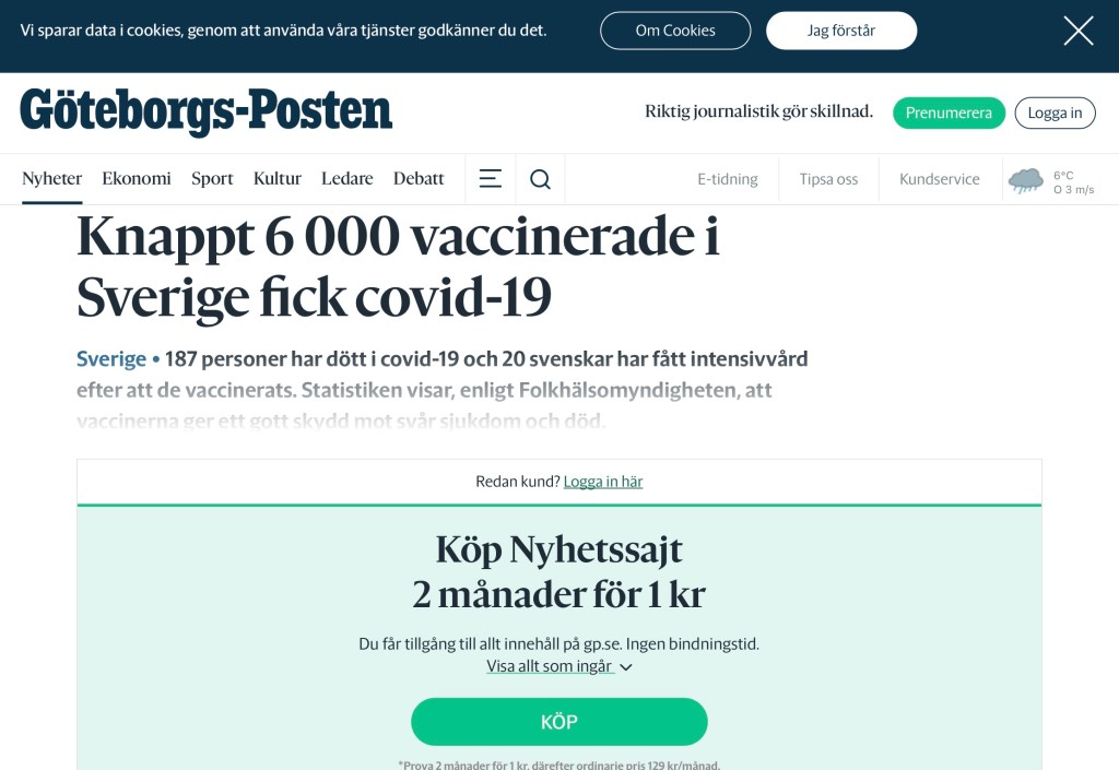 Av de som har vaccinerats mot Covid-19 i vårt land har