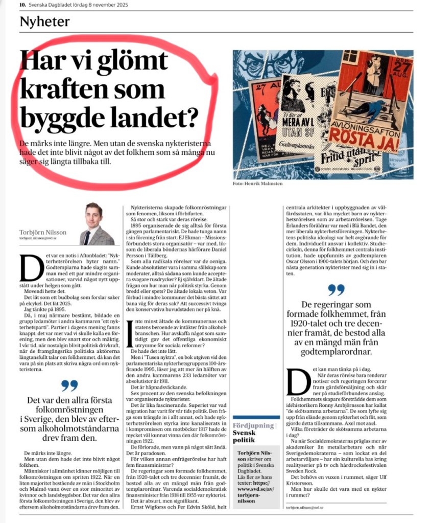 De regeringar som formade folkhemmet, från 1920-talet och tre decennier framåt, de bestod alla av en mängd män från godtemplarordnar. Varenda socialdemokratisk finansminister från 1918 till 1955 var nykterist.