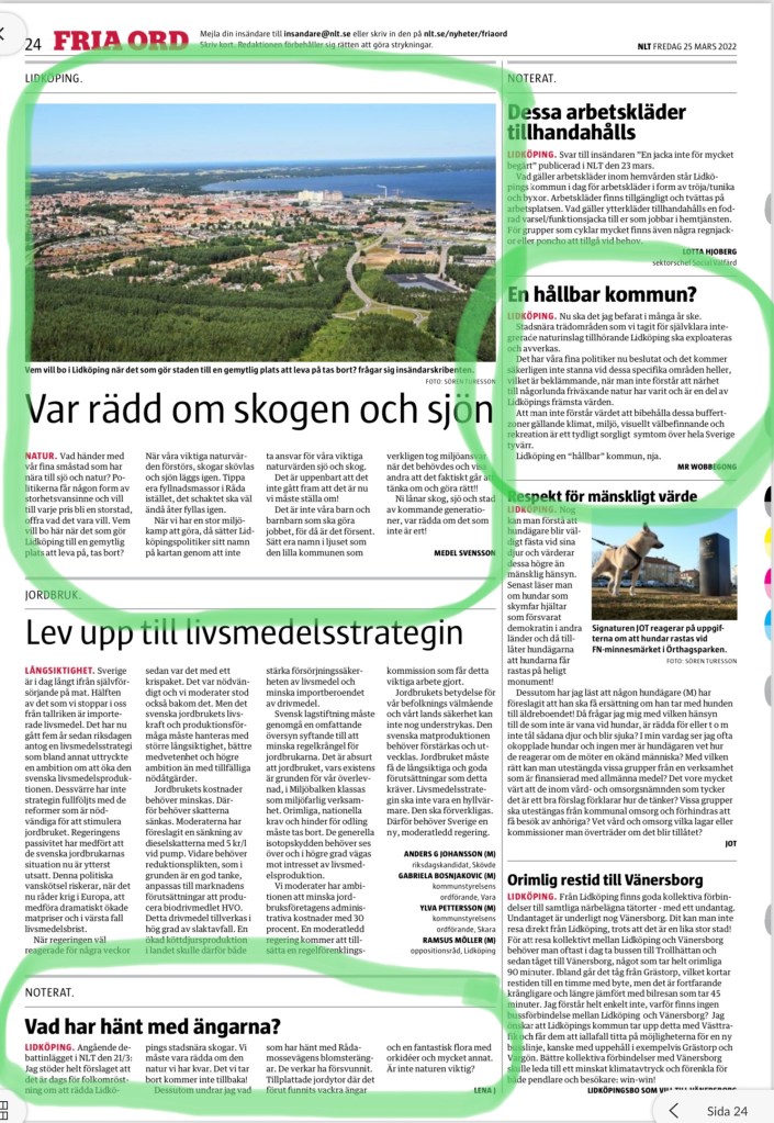 Förnuft är ibland en bristvara i den politiska ledningen i vår kommun. Det gäller inte bara synen på tillväxt och utraderande av tätortsnära skogar.